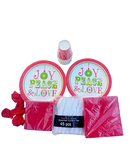 Christmas or Peace, Love and Joy Plates and Dinnerware Pack (Red napkins)