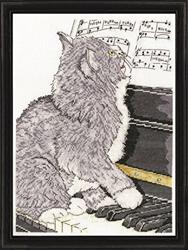 Tobin Piano Cat Cross Stitch Kit-10"X14" 14 Count