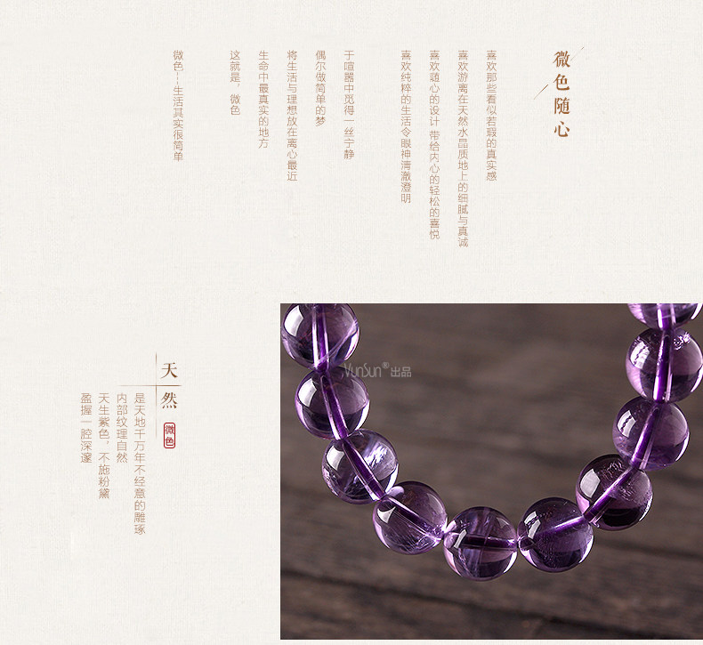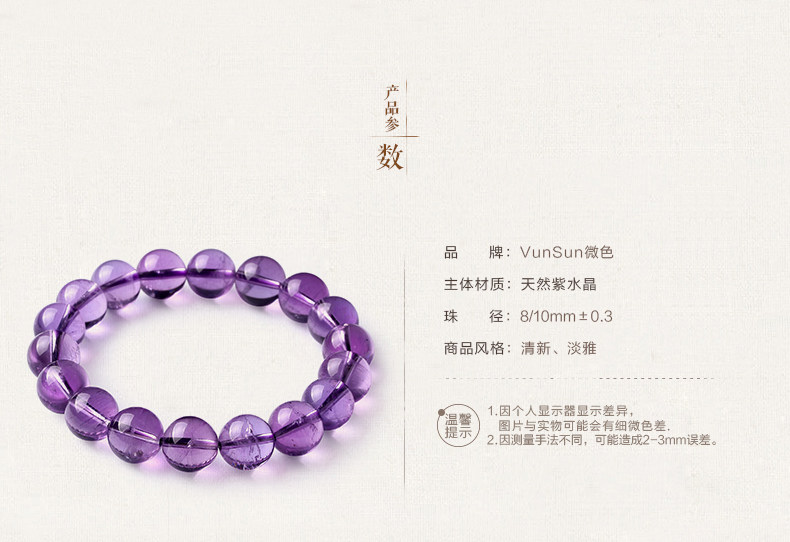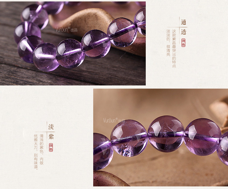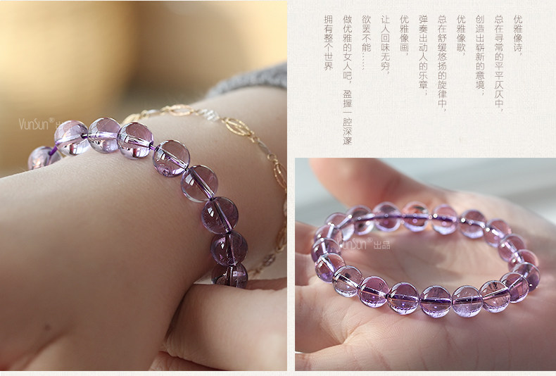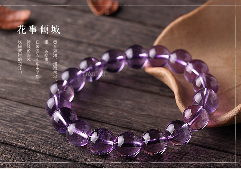 天然紫水晶手链女款 单圈紫色佛珠手串女通透简约文艺饰品
