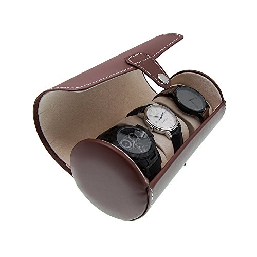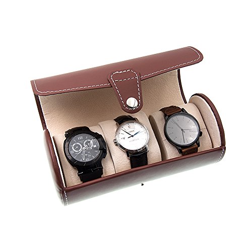 MGS AWP-3 Travel Watch Organizer Watches Case Leatherette Roll Watch Storage Pouch Jewelry Box 3-Slots (Brown)