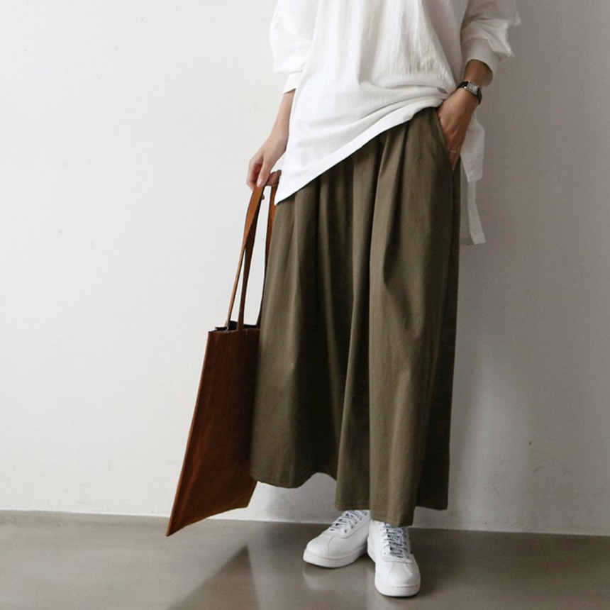 편안한 핀턱 주름 밴딩 와이드 통팬츠로