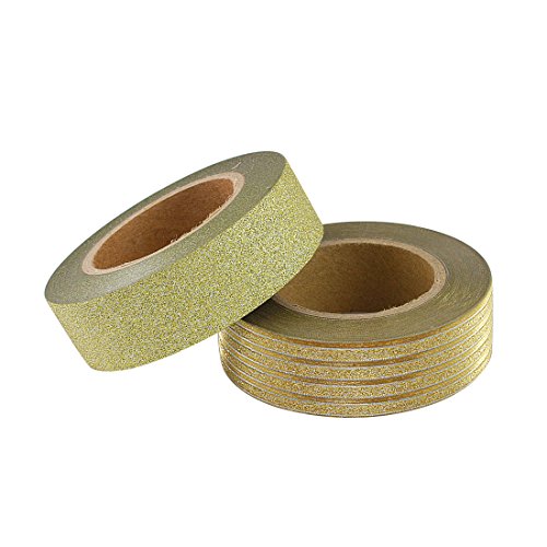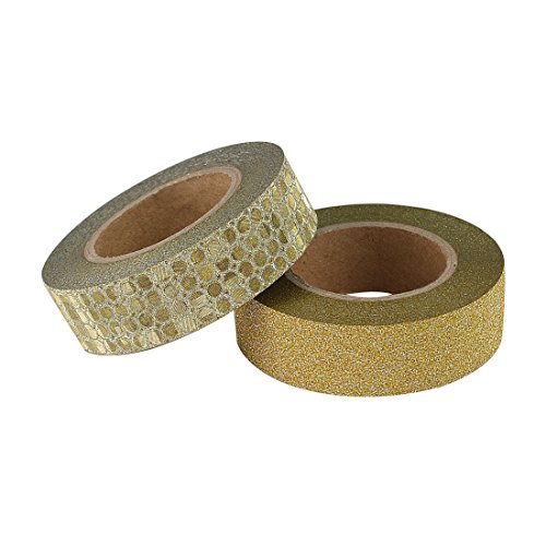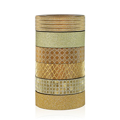 Crafty Rolls Decorative Glitter Washi Tape Set of 6 Perfect for Scrapbooking, DIY Crafts and Gift Wrapping - Large 10 Meter Length - Geometric, Striped, Circles and Solid Designs - Gold