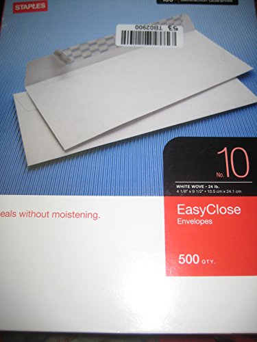 Staples #10, EasyClose Envelopes, 500/Box