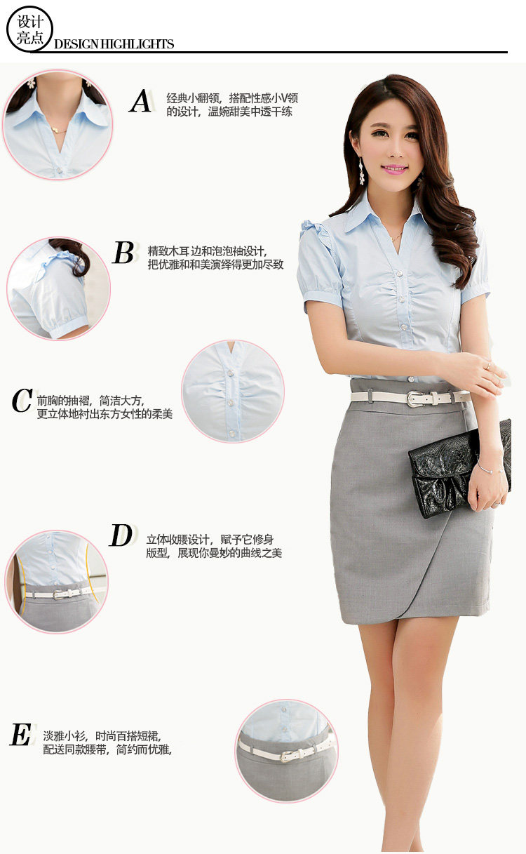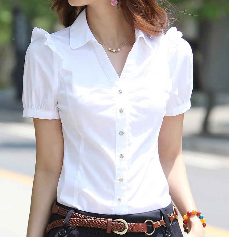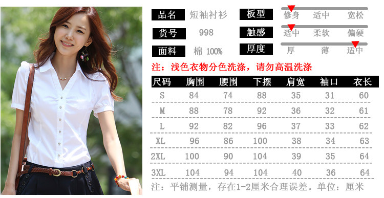 韩版修身v领纯棉OL职业衬衫 正装白短袖衬衫显瘦工作服女装