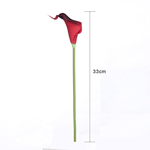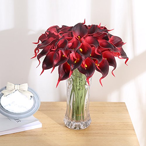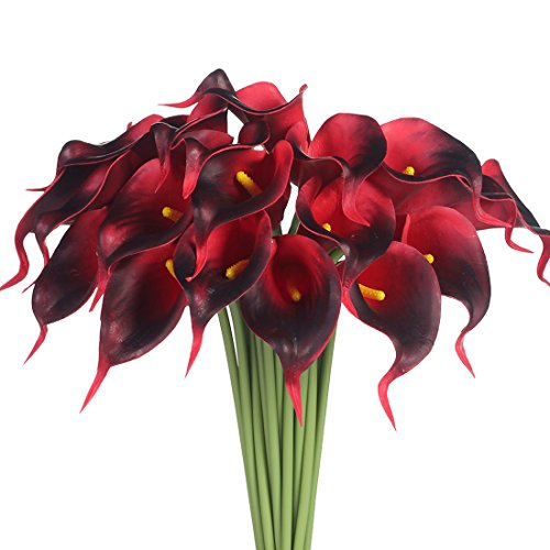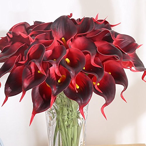 JUSTOYOU 20pcs Artificial Calla Lily Real Touch Latex Flower for Bride Wedding Home Decor (Dark Red)