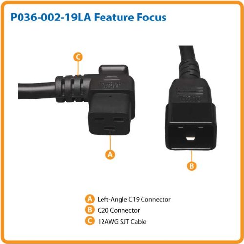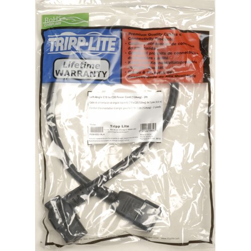 Tripp Lite Heavy-Duty Computer Power Extension Cord for Servers and Computers 20A, 12AWG (Left Angle IEC-320-C19 to IEC-320-C20) 2-ft.(P036-002-19LA)