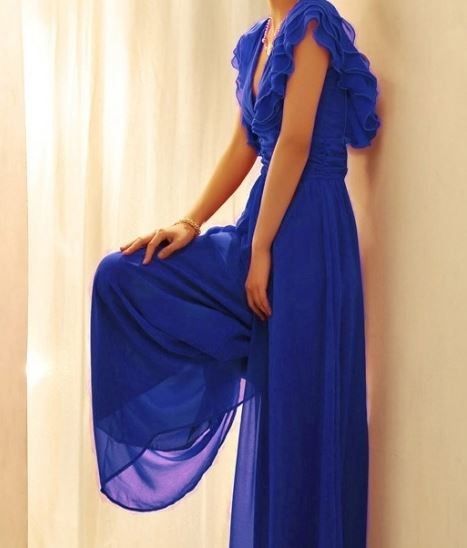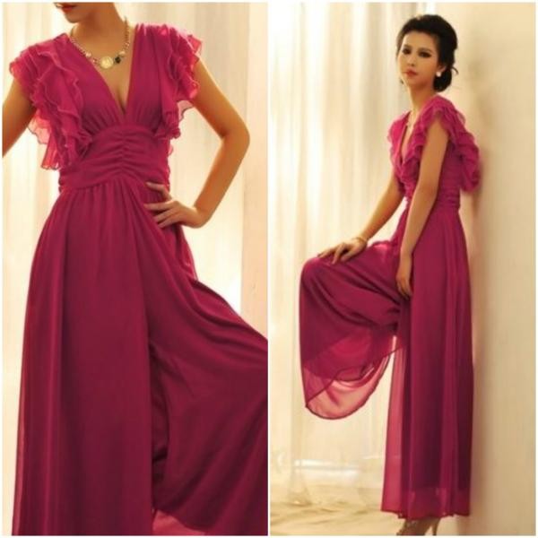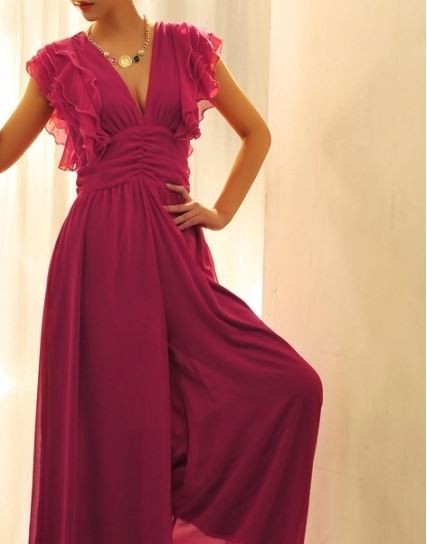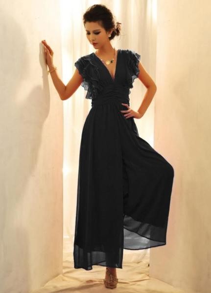 セクシー ゆるふわパンツドレス Vネック シフォン オールインワン
