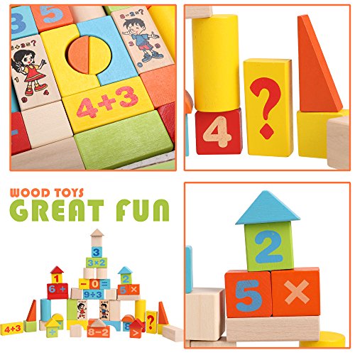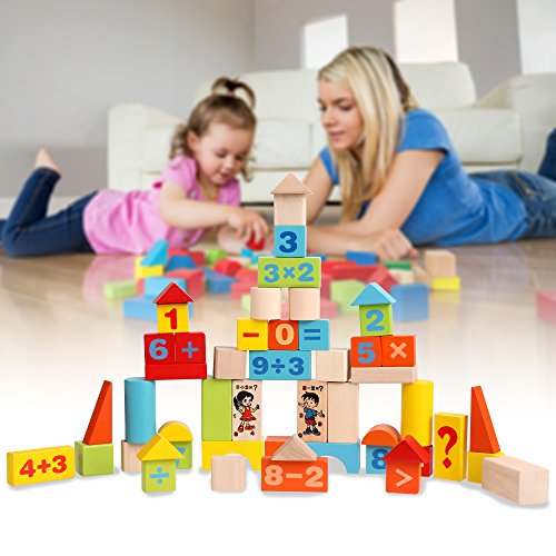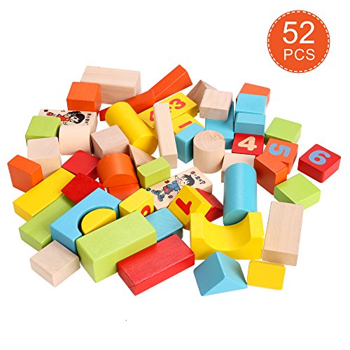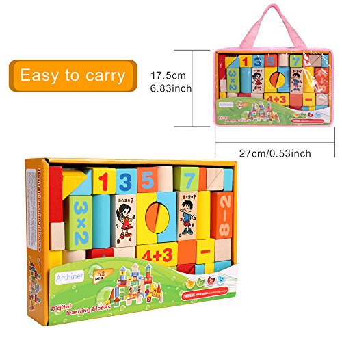 -. Title : Baby 52 PCS Colorful Wooden Digital Building Learning Block Educational Set Toys