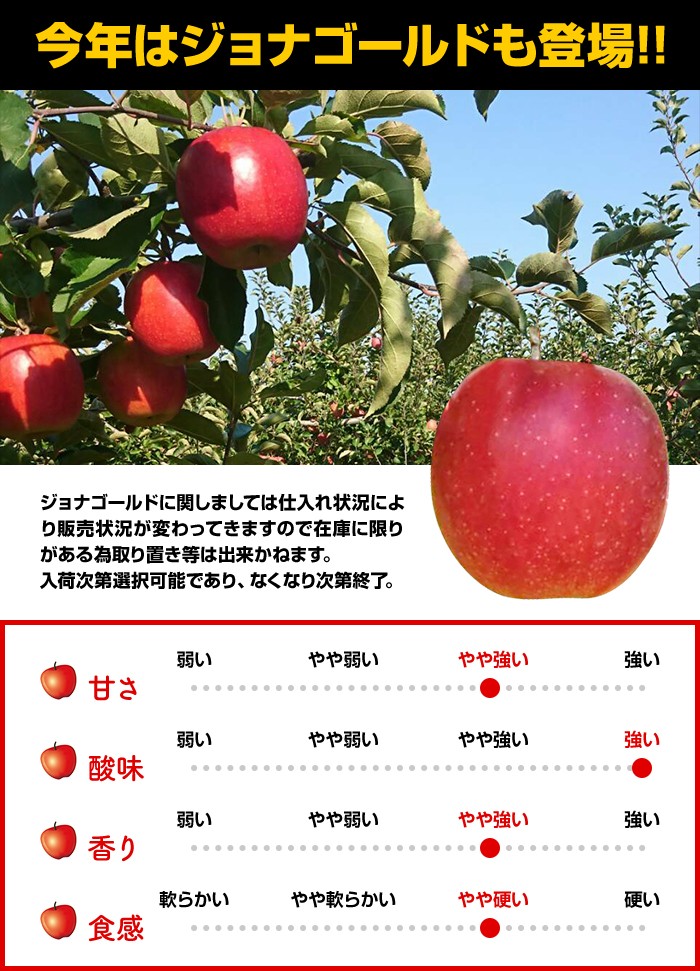 現在サンふじ、シナノゴールドを販売しております。