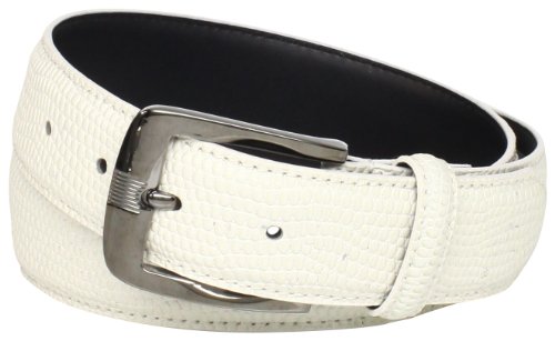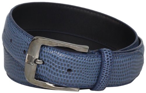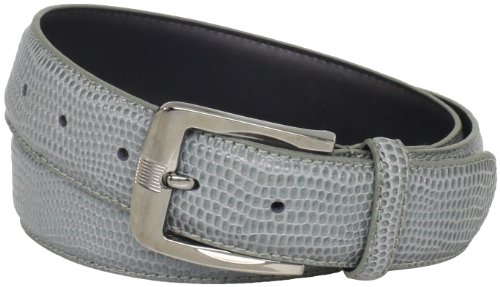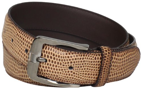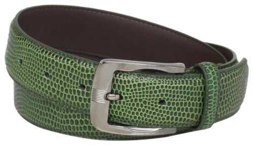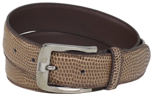 Genuine leather lizard skin print belt, brushed nickel buckle
