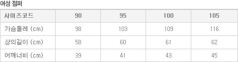 | 사이즈 조견표:
