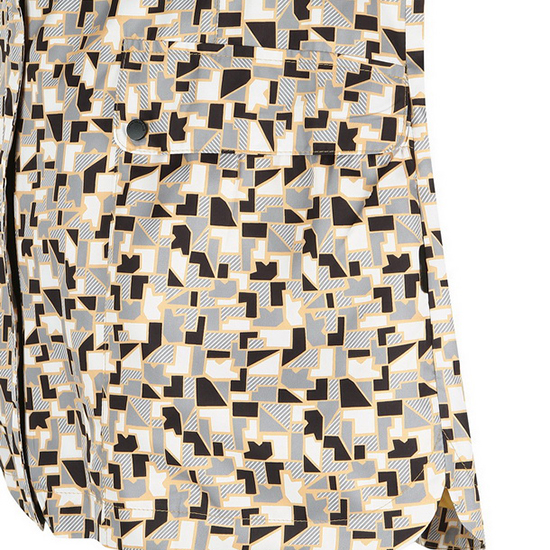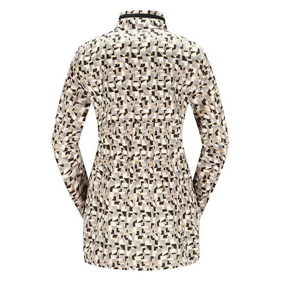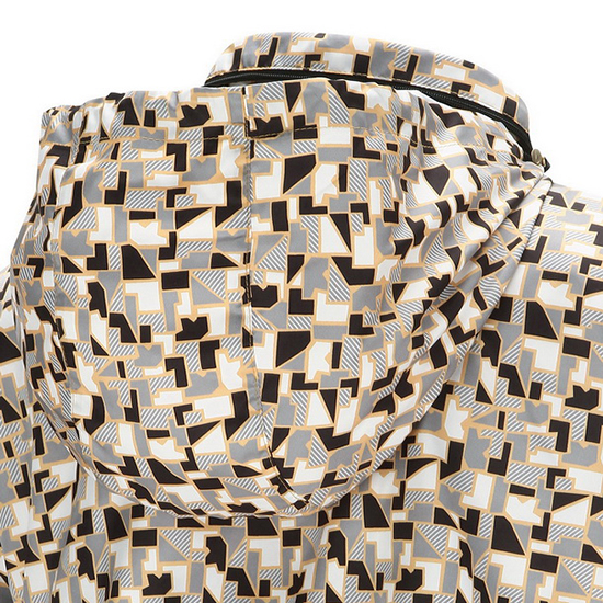 - 믹스 블럭 패턴 텍스쳐 디자인을 적용한 여성 점퍼.