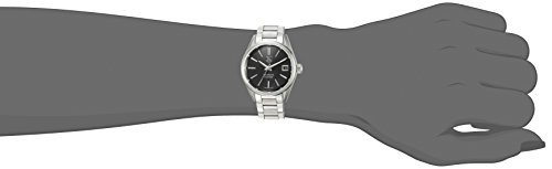 Black dial with silver-tone hands and index hour markers; Dial type: analog; Luminescent hands and markers; Date display at the 3 o'clock position