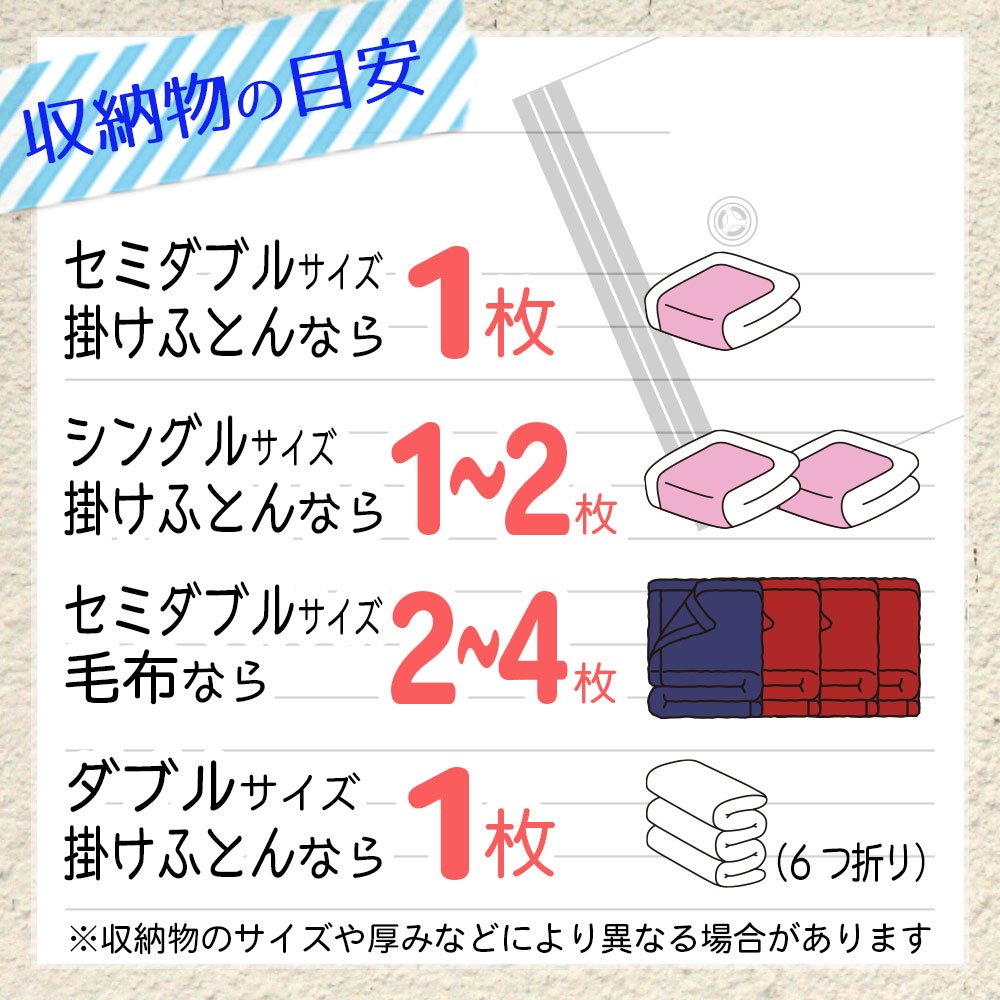 ● Estimated items ... 1 for semi-double quilt, 1 or 2 for single quilt, 2 to 4 for semi-double blanket, 1 for double size comforter.