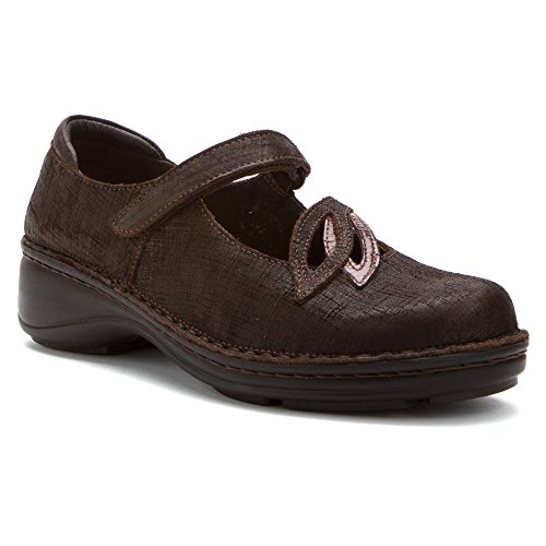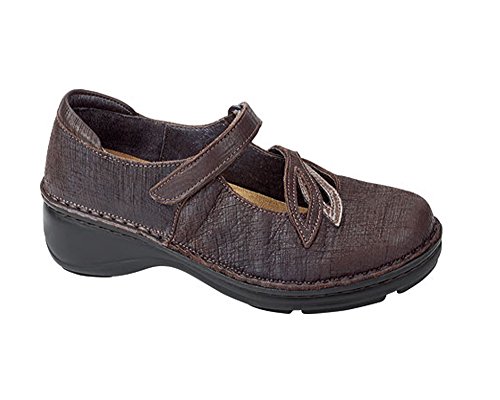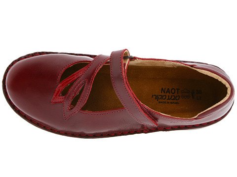 Let high spirits bloom in the Naot Primrose. The smooth leather upper of this women's shoe is enhanced by patent leather leaves and stitching detail. An adjustable strap with a hook-and-loop closure ensures a snug fit for this Naot shoe, while the removable suede-covered cork and latex footbed lends moisture-wicking anatomical support. A rubber sole provides grip on a variety of surfaces. A sweet Mary Jane, you're sure to love the Naot Primrose.