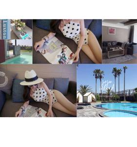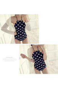 ワンピースタイプ ハート柄 水着 リゾート 海 プール プチプラ モノトーン ハート バックリボン