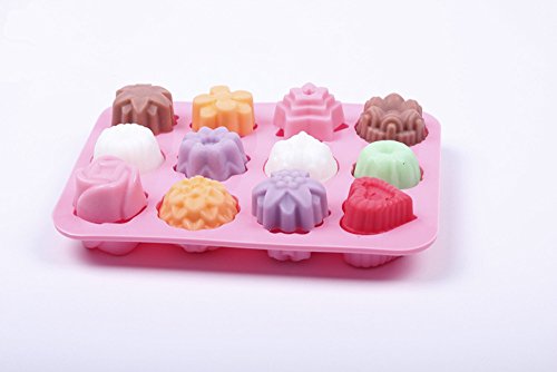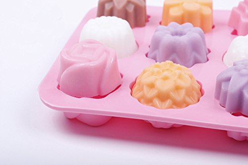 Silicone Bakeware Mold For cake, chocolate, Jelly, Pudding, Dessert Molds, 12 Holes With Flower, Heart Shape