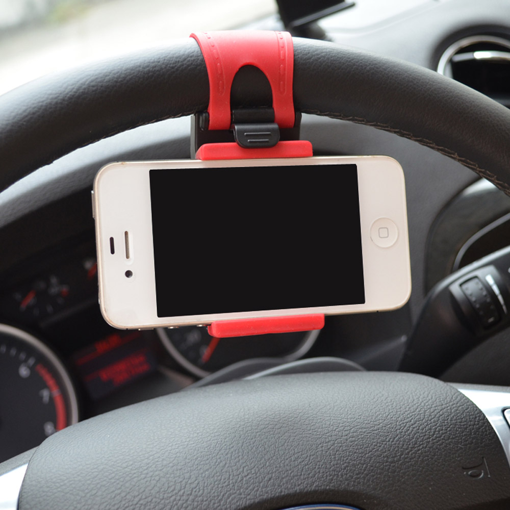 Elastic car steering wheel holder, hold your device on the steering wheel. Suits for iPhone 5 5S 5C 4S and other cellphones, MP4, GPS devices up to 5-inch screens.
