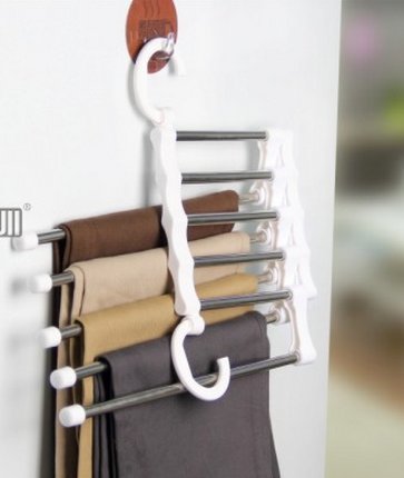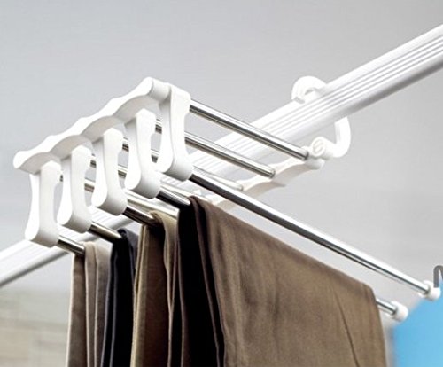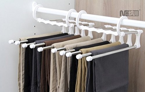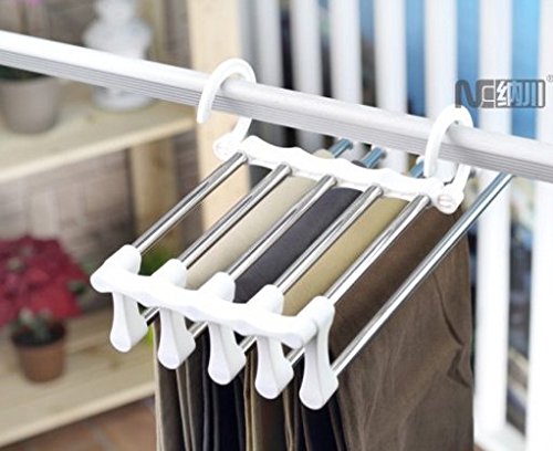 Folding slacks hanger 5 stations convenient pants housed five (1 White Silver)