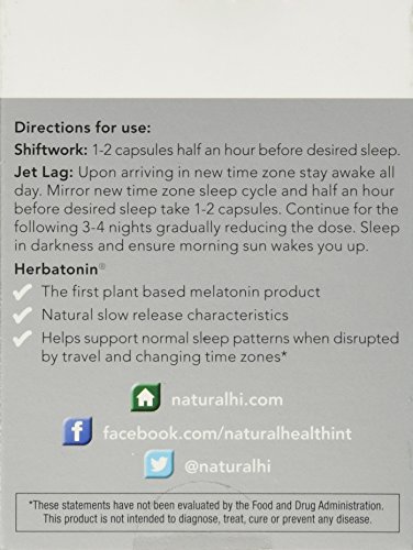 -. Binding : Health and Beauty -. Brand : Natural Health International -. EAN : 0893814001031 -. Feature : The first and only natural plant based melatonin product on the market / Bio-identical to human melatonin* / Plant cell structure has beneficial slow-release characteristics* / Melatonin is one of the strongest brain antioxidants* / Helps support normal sleep patterns when disrupted by travel and changing time zones* -. Label : Natural Health International -. Manufacturer : Natural Health International -. Model : HERB01 -. MPN : HERB01 -. PackageQuantity : 1 -. PartNumber : HERB01 -. ProductGroup : Health and Beauty -. ProductTypeName : HEALTH_PERSONAL_CARE -. Publisher : Natural Health International -. Studio : Natural Health International -. Title : Herbatonin 3mg Plant Melatonin 60 Capsules for Sleep, Travel & Shift Work -. UPC : 893814001031