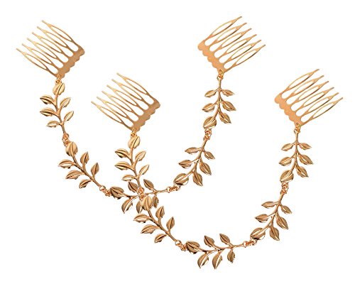 -. Feature : Material: metal / Unique design is adorable and attractive / Gold leaf shaped pins is special and delicate / Pack of 2 / Great for any hair style, for weddings, proms, parties, etc
