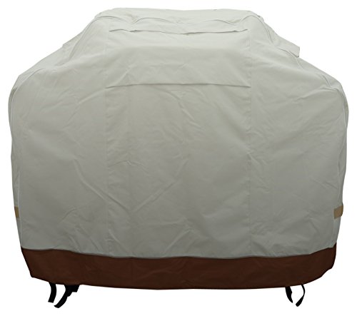 - Feature : Deluxe heavy-duty polyester grill cover that protects your grill from the elements / Fits all grills up to 64 inches wide / Designed with a unique dual strap system. Velcro and click-close straps provide the perfect fit / Handles for easy removal / Water resistant. 2-year warranty