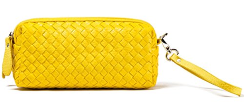 -. Feature : Size:7.9"x 3.1"x 3.9"(LxWxH) approx / Woven textured synthetic PU leather,solid-colored polyester lining, gold-tone hardware. / Classic and elegent design, great storage capacity including two main top zipper pockets. / One removable and adjustable crossbody strap and simple zipper closure. Best organizer for women and girls. / Super convenient clutch bag and wristlet purse for cellphone,bank cards,coins and small stuffs.It can contains many little stuffs.