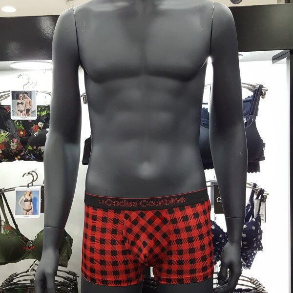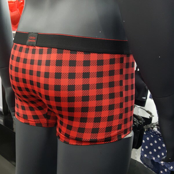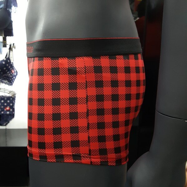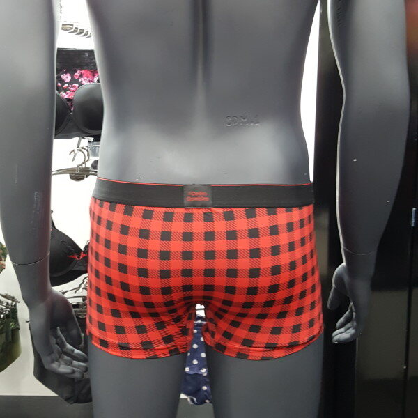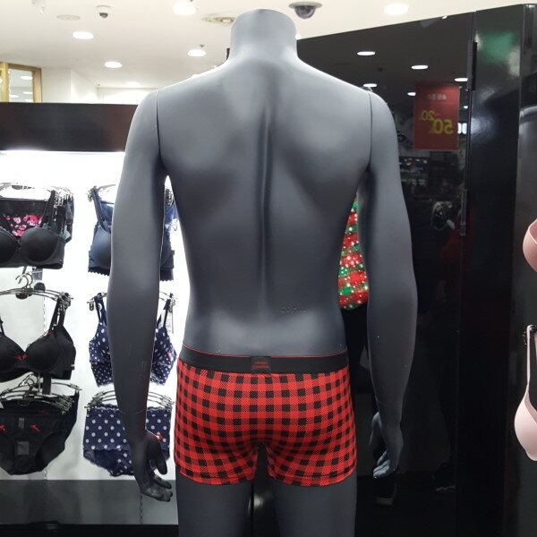 체크 패턴 스타일에 블랙 아웃밴드에 레드 로고로 포인트 된 남성 드로즈입니다. 편안한 착용감을 주는 제품입니다.