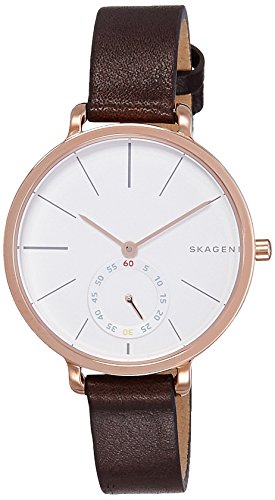 Skagen Denmark Women's Hagen Watch In Rose Goldtone With Dark Brown Leather Strap And White Dial