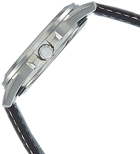 -. Feature : Precise Japan Quartz Movement - Accuracy: +/-20 seconds per month / Stainless Steel Case, Leather Strap, Regular Connect Type Buckle Clasp / Mineral Crystal, Day/Date Display, 3-Hand Analog / Size of case: 46.6 × 39.9 × 8.9 mm / Water Resistant - 5 ATM