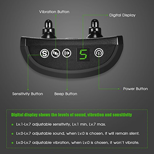 Humane Adjustable levels Our anti-bark collar provides you with 0-7 levels of sensitivity, 1-7levels of sound and vibration to choose to adapt to different occasions and pets of different sizes and ages.