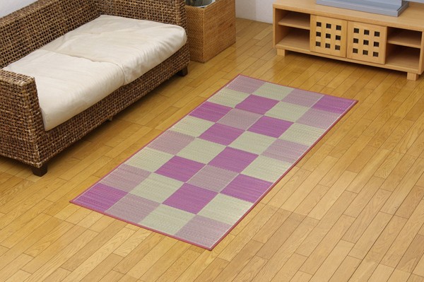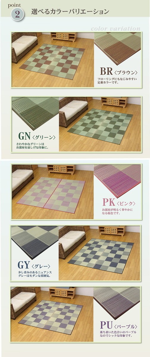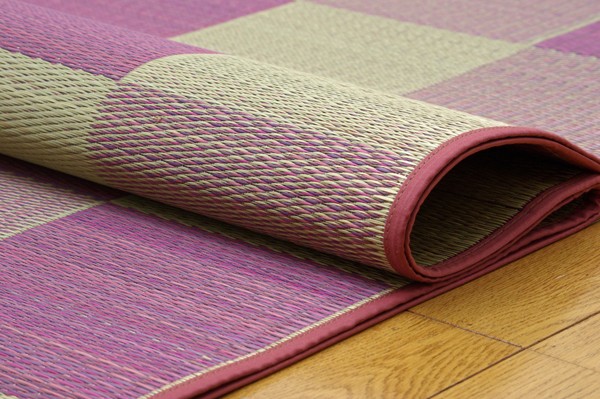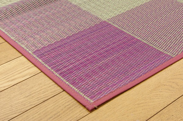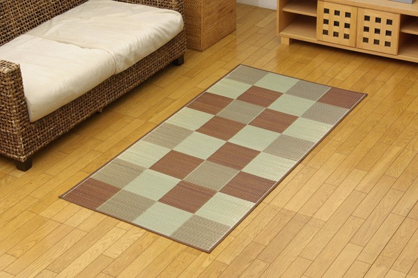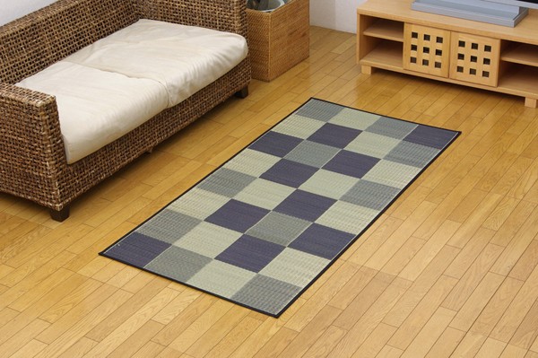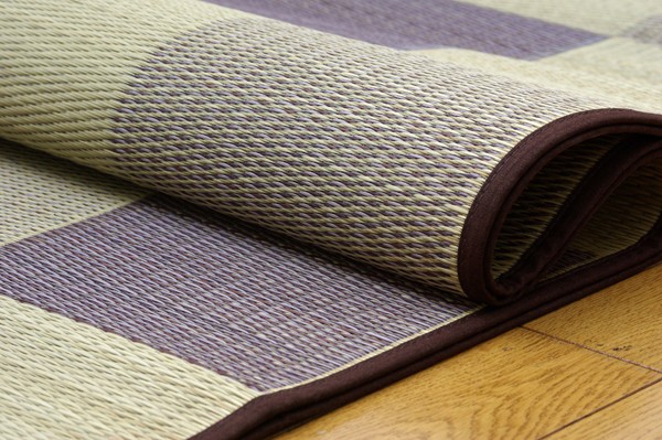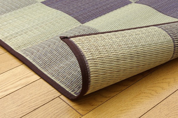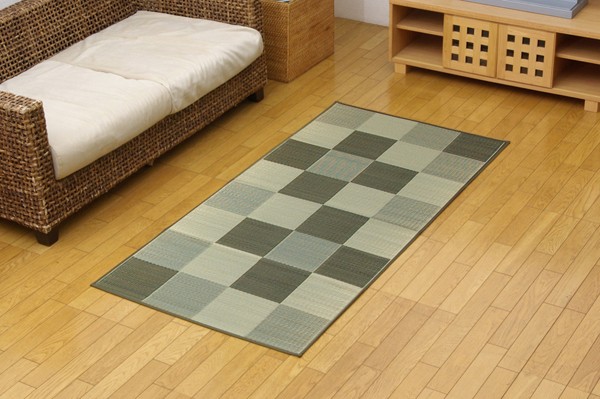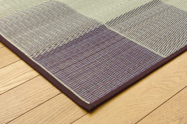 シンプルで飽きのこないブロック柄のい草カーペットです。国産(九州産)のい草を使用しています。一本一本が太く、表皮が厚く繊維がキメ細かいので弾力性があり、耐久性に優れています。い草には空気の自然浄化作用、湿度の調節作用などがあります。また汚れにくく、使用するうちに黄金色に変化し味が出ます。い草に青森ヒバ加工を施しています。(抗菌、防臭効果)