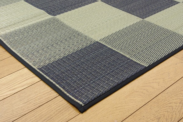 【商品名】純国産 い草花ござカーペット 『ブロック』 グレー 江戸間3畳(174×261cm)