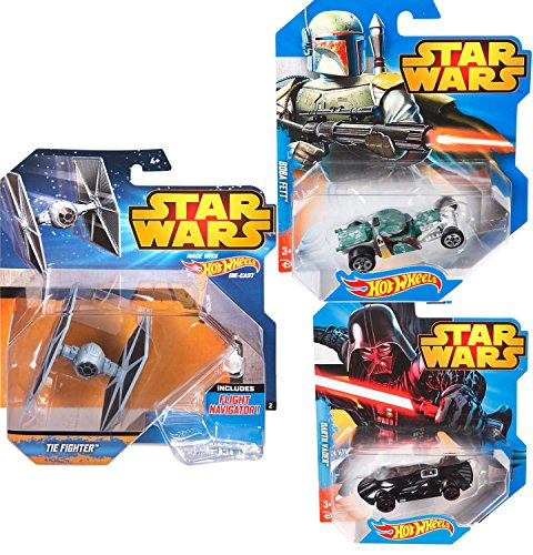 -. Binding : Toy -. Brand : Hot Wheels -. Color : black -. Department : unisex-child -. EAN : 0787637873541 -. Edition : Star Wars -. Feature : Dark Side 2 Car & 1 Ship Star Wars Set Villains / Tie Fighter with Flight Navigator Star Ship / Darth Vader & Boba Fett reimagined as a Hot Wheels car / Collect and play with a galaxy of Hot Wheels Star Wars cars / Authentic and highly collectible - Designed in 1:64-scale with true-to-character features and decos -. IsAdultProduct : 0 -. Label : Mattel -. Manufacturer : Mattel -. MPN : HWSW-STDS-3pk -. PackageQuantity : 1 -. PartNumber : HWSW-STDS-3pk -. ProductGroup : Toy -. ProductTypeName : TOYS_AND_GAMES -. Publisher : Mattel -. Studio : Mattel -. Title : Star Wars Dark Darth Vader Tie Fighter Ship Villain Hot Wheels Character Car Set, Star Ship Darth Vader, Boba Fett -. UPC : 787637873541