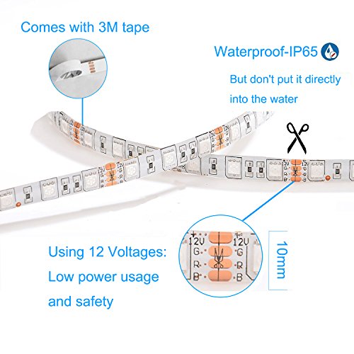 - ✅High quality components: RGB 5050 SMD LED, A total of 300 leds, Competitors led size only 3528 and only 150leds, We offer higher brightness. Led strip light can be cut between every 3 leds. self-adhesive tape can be fit on any dry and flat surface.