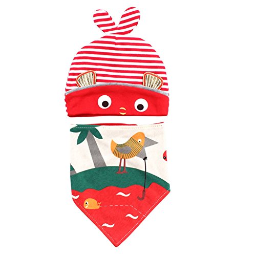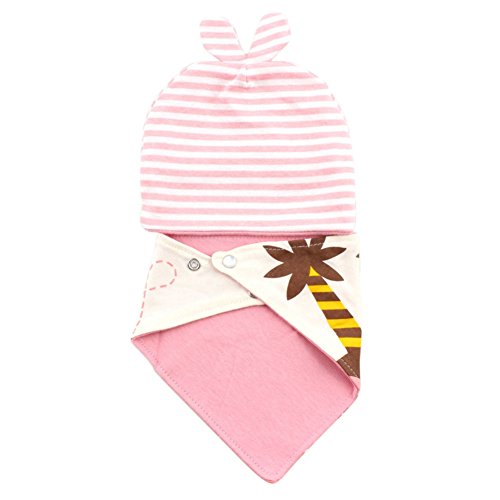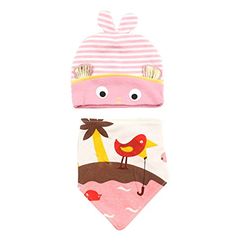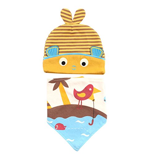 (ESHOO)/Accessories/Cold Weather Accessories/DIRECT FROM USA/ESHOO Newborn Baby Lovely Cartoon Hat with Triangle Towel Bibs 2Pcs Set