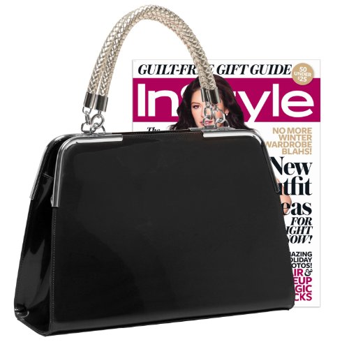- Feature : **Official MG Collection® product by MyGift®** / Sleek shape and shiny exterior give this evening handbag a modern and sophisticated look that will set you ahead of the pack in terms of style. / 2 pocket-style organizers, 1 zippered pouch and 1 large zippered pouch as a partition to transform the main interior space into 2 large compartments. / Carry this stylish satchel purse by the 2 silver-tone braided handles or by the detachable shoulder strap. MG Collection® charm keychain included on select styles: Black / Orange / Pink / Nude / Made of PU Patent Leather. Approximate Dimensions: Exterior - 8.5" H X 12" W X 3.5" D; Interior - 7.5" H X 11" W X 3.5" D; Handle Drop: 4.5"; Shoulder Strap: 20" drop.