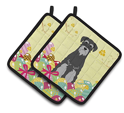 Caroline's Treasures BB6034PTHD Easter Standard Schnauzer Pair of Pot Holders, 7.5" x 7.5", Multicolor