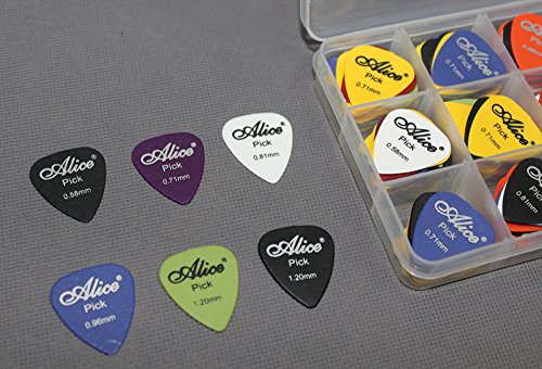 100pcs Acoustic Electric Guitar Picks Plectrum Various Colors 6 thickness 0.58/0.71/0.81/0.96/1.20/1.50 mm + Pick Box