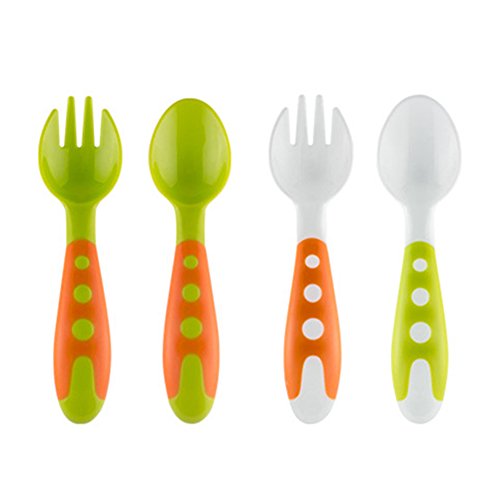 The spoon and fork sets are made from the highest quality food grade and non-toxic materials. BPA free. It also can be used as a teether as well. The spoon and fork sets come in multiple bright colors.