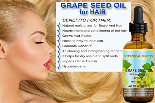 - GRAPE SEED Oil helps for DRY, DAMAGED HAIR, DRY SCALP AND BRITTLE NAILS. LIP CARE. GRAPE SEED Oil is one of the lightest Grape Seed oils available. It is a highly penetrating emollient oil, absorbs easily into the skin, so it makes a GOOD MASSAGE oil.