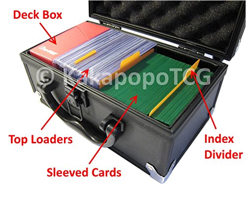 -. Feature : Aluminium Frame Storage Case for TCG, Trading Cards, Card Games. Also fits Deck Boxes and Top loaders. / Holds over 500 unsleaved cards or over 250 sleeved cards. Perfect for Magic the Gathering, Yugioh, Pokemon, Wow, Vanguard, Match Attax or any other Trading Card Game. / Also perfect for storing Card Games such as Cards Against Humanity (Main game only), Crabs Adjust Humidity, Uno, Phase 10, Poker Cards, Apples to Apples. / Internal Dimensions: 200mm x 110mm x 67mm (Excluding lid cavity space). / Includes 3 plastic index cards (90mm x 70mm) for dividing cards stored inside the case.