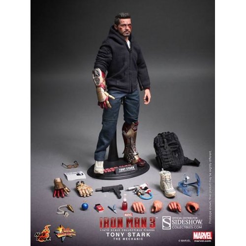 ホットトイズの「ムービー・マスターピース」シリーズの、マーベルのアクション超大作映画『アイアンマン3』より、トニー・スターク(マンダリン邸襲撃版)が登場だ! 全高約30センチ、30箇所以上が可動するフィギュアは、マンダリンの邸宅に突入した際のトニー・スタークの姿を見事に立体化している。ヘッドは、演じるロバート・ダウニーJr.の肖像権をクリア。素体胸部のアーク・リアクターにはLEDによるライトアップ機能を搭載。また、遠隔でアイアンマン・マーク42を操作する際の、ホログラムエフェクトを再現したヘッドセットが付属するのも嬉しいポイントだ。ホームセンターで揃えたありあわせの製品で急造した武器の数々も、すべて精密に造り込まれている。Feature