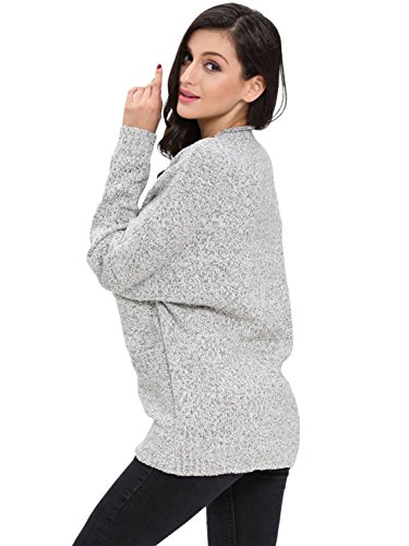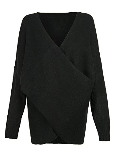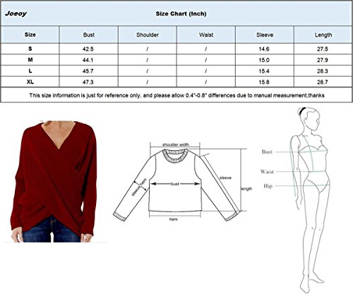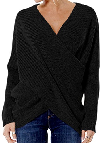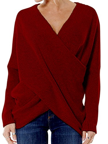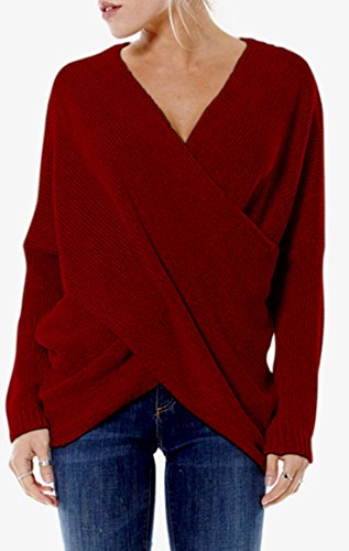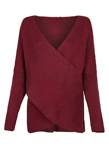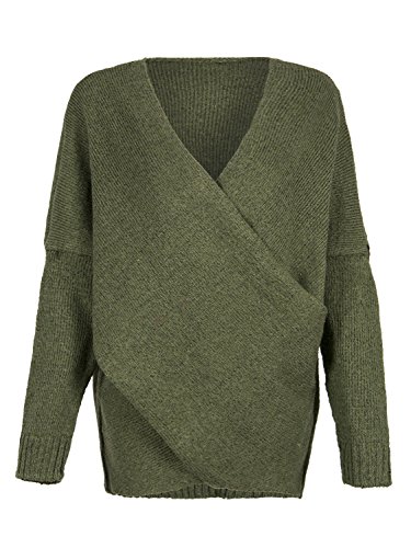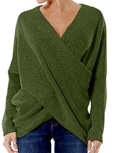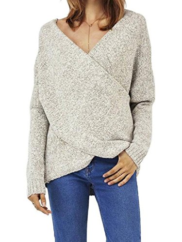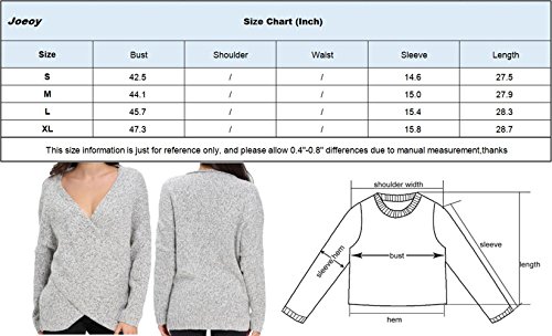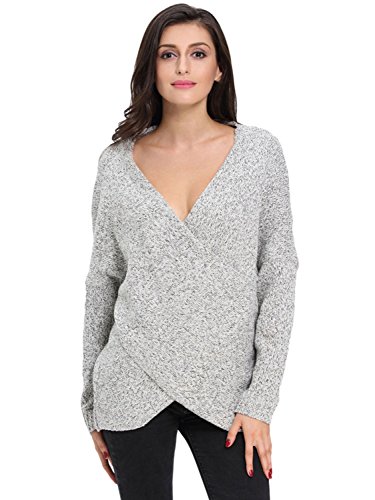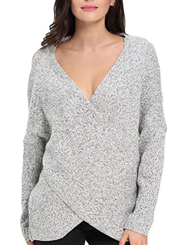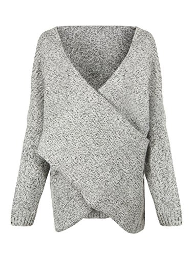 | Joeoy Women's Gray Criss Cross Wrap Front V Neck Long Sleeve Knit Sweater Jumper |