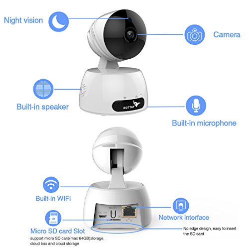 IP Kamera wifi Uberwachungskameras WLAN Uberwachungskamera, Rottay HD 1080P IP Kamera Wireless Home Netzwerk-Video-Kamera,mit Bewegungsmelder, IP Kamera Nachtsicht, Bewegungserkenn