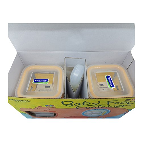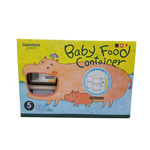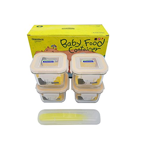 Glasslock Baby Food Container square 210ml 4 EA with silicone spoon 1 EA