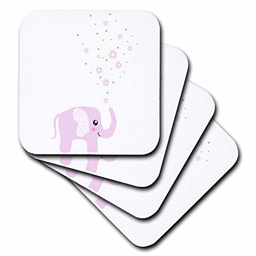 3dRose LLC cst_113125_1 Soft Coasters, "Cute Pink Elephant Blowing Flowers from Trunk-Girly Kawaii Kids Nursery Animal Baby Girl Cartoon", Set of 4