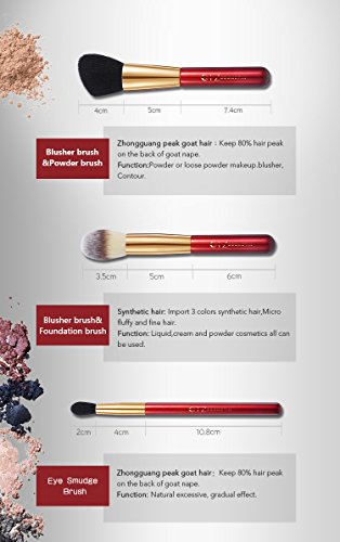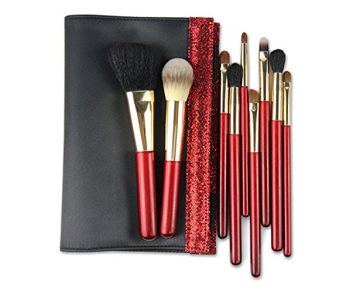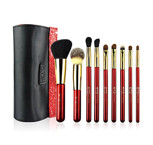 TZ COSMETIX - Bordeaux Professional 9 Hand Made Makeup Brush Set Kit for Eyeshadow Foundation Face Powder Blusher Daily use