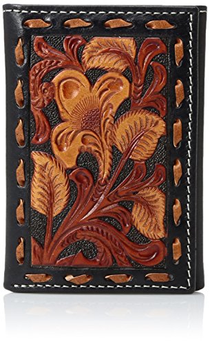 Studio : Ariat Men's Accessories Publisher : Ariat Men's Accessories Binding : Apparel Product Description This beautiful Nocona tri-fold wallet by medium and f western products features a western floral embossed design of tan and brown against a black background. Inside features multiple compartments for your credit cards, cash, and a place for your id. 0