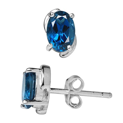 1.78ct. Genuine London Blue Topaz 925 Sterling Silver Stud Earrings
